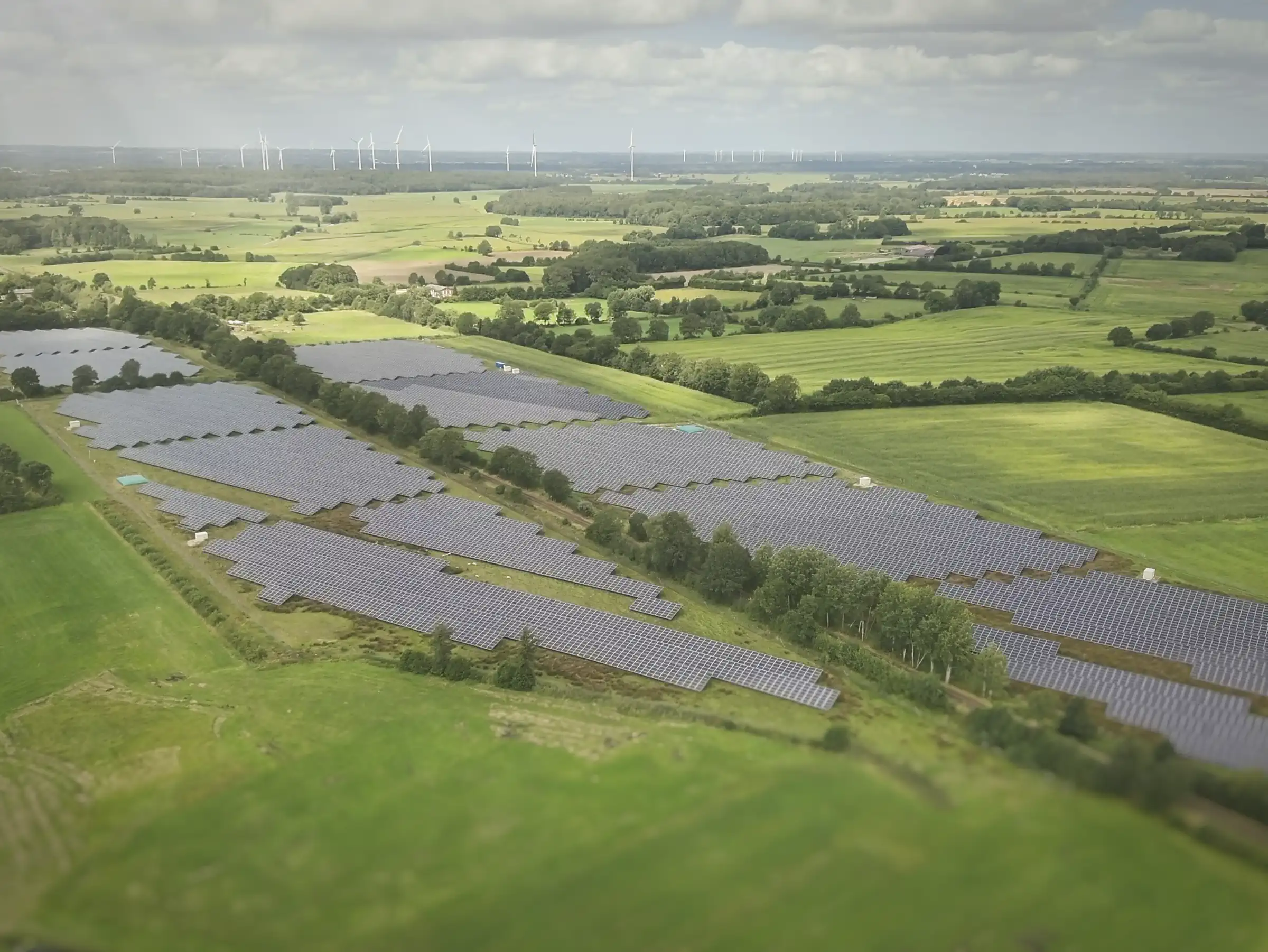 Überflug über die Freiland Photovoltaikanlage (PVA) in Gokels