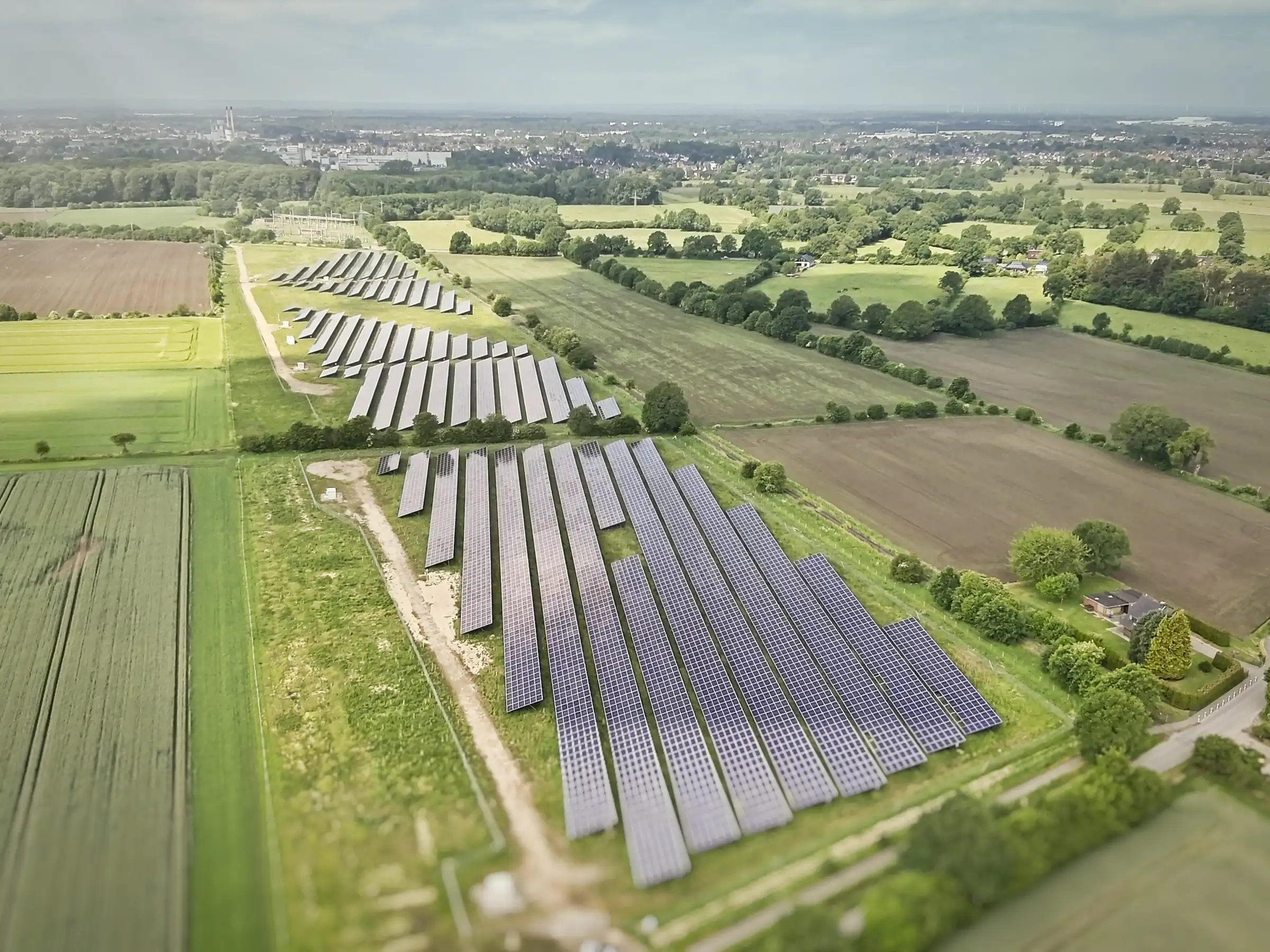 Überflug über die Freiland Photovoltaikanlage (PVA) in Krogaspe